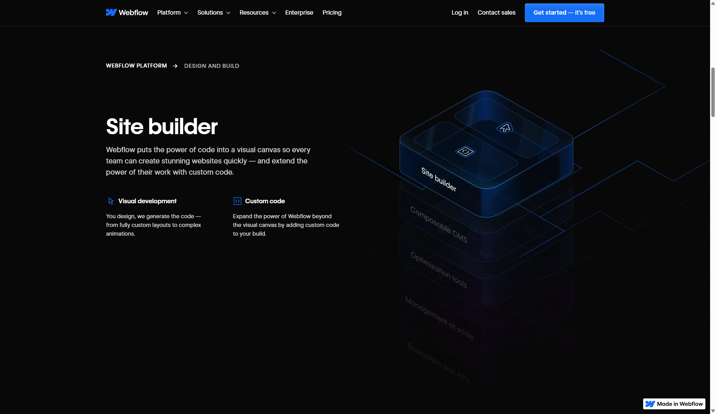 The platform consists of four main components: Designer for visual website creation, CMS for content management, e-commerce tools for online stores, and hosting services. Unlike simple website builders that limit your design options, Webflow embraces web development principles like flexbox, CSS Grid, and responsive breakpoints — making them visual and accessible to non-coders.