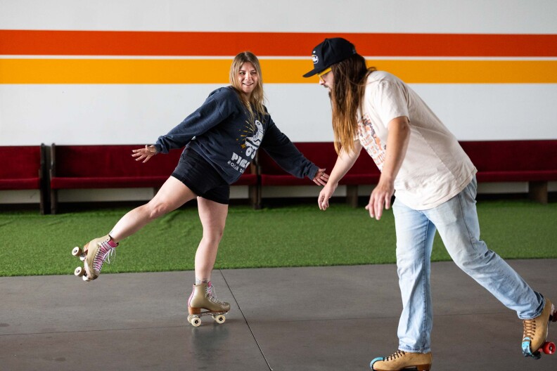 Shayna Meikle owns Pigeon’s Roller Rink in Long Beach, along with a nearby skate shop and another rink in Mission Viejo. She spends most days in front of a computer, tending to the minutiae of running a business, or updating her company’s social media.